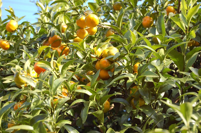 果実は、極めて小さく10〜30g程度である。果梗部、果頂部ともに窪み、極めて扁平となる。果面は、滑らかで黄橙色を呈する。果皮は薄く、浮皮になりやすいので容易に剥皮できる。じょうのうは9〜10室あり、種子は完全種子が3〜4粒あるが、しいなはほとんど見かけない。果肉は柔軟であるが、完全着色時でも酸味が強く、香酸柑橘の範疇に入れる場合もある。しかしながら、本品種を年明けて春先まで樹上にならせると、酸が切れており、糖度も上昇しているため、十分に食することができる。また、その果汁も美味である。